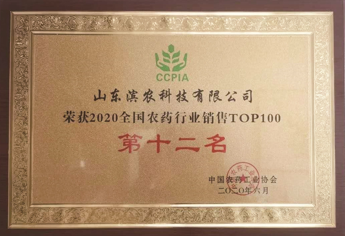 ■2020-06-06 濱農科技榮獲“2020全國農藥行業(yè)銷售TOP100”第十二名