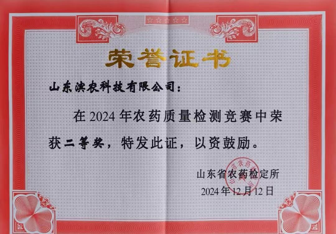 ■2025-01-15 濱農(nóng)科技獲全省農(nóng)藥質(zhì)量檢測競賽二等獎