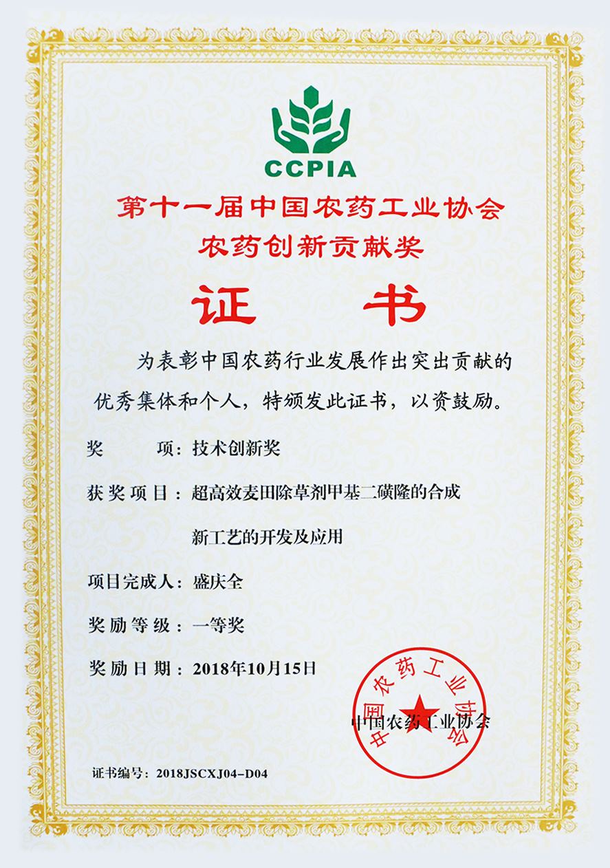 據(jù)悉,在被評(píng)定為綠色產(chǎn)品的11家石油和化工行業(yè)企業(yè)中,僅有2家農(nóng)藥化工企業(yè)獲此殊榮。我公司研究所所長(zhǎng)盛慶全參加了此次大會(huì),并代表公司上臺(tái)領(lǐng)取證書(shū)。