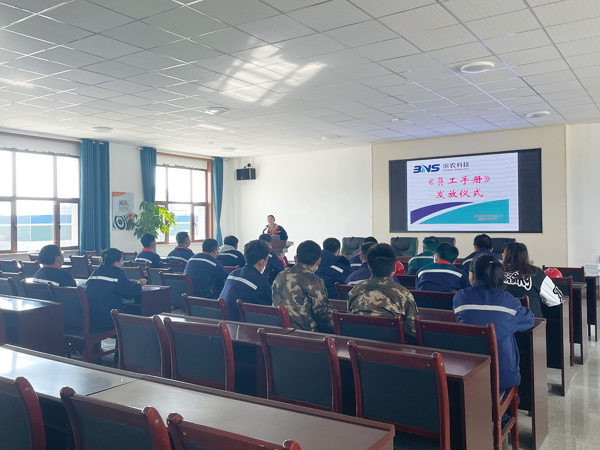 繼濱農(nóng)科技總部首版《員工手冊》發(fā)行并組織開展全員文化測試線上答題活動后,11月7日,甘肅濱農(nóng)科技有限公司在三樓會議室組織進(jìn)行了《員工手冊》發(fā)放儀式,各部門、車間30余名代表參加了本次儀式。儀式上,行政管理部安婕就員工手冊發(fā)放標(biāo)準(zhǔn)及管理辦法進(jìn)行了宣讀,并要求各部門、車間代表傳達(dá)至每一位員工,本次員工手冊共發(fā)放635本,全體員工人手一本。