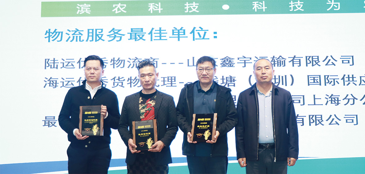 會上,物流部主任謝云東誠摯歡迎承運(yùn)商參會,并感謝長期以來對公司的支持。物流部主管詳細(xì)匯總并分析了陸運(yùn)運(yùn)輸過程中出現(xiàn)的各類問題,并提出了相應(yīng)的解決方案,同時對下一步運(yùn)輸提出了更高要求。海運(yùn)訂艙專員介紹了對海運(yùn)工作具體情況,對比分析了出口數(shù)據(jù),對各合作貨運(yùn)代理進(jìn)行了評價并提出了針對性要求。謝主任從濱農(nóng)的生產(chǎn)經(jīng)營情況、物流主要工作、存在的問題及改進(jìn)措施、下一步工作計劃等四個方面進(jìn)行了全面解讀,圍繞運(yùn)輸效率提升、成本控制、服務(wù)質(zhì)量優(yōu)化等多個方面提出了具體要求,為后續(xù)合作明確了方向;此外,依據(jù)承運(yùn)商年度合作評價標(biāo)準(zhǔn)對所有物流商進(jìn)行了評分展示,最終,山東鑫宇運(yùn)輸有限公司榮獲“陸運(yùn)優(yōu)秀物流商”,錢塘(深圳)國際供應(yīng)鏈管理有限公司上海分公司榮獲“海運(yùn)優(yōu)秀貨物代理”,山東華業(yè)物流有限公司獲評“最佳進(jìn)步物流商”。業(yè)務(wù)跟單服務(wù)部經(jīng)理張倩結(jié)合當(dāng)前國際形勢對出口業(yè)務(wù)的影響,對貨運(yùn)代理提出了專業(yè)詳細(xì)要求,以確保貨物安全高效出運(yùn)。最后,副總經(jīng)理郭安勇深刻剖析了宏觀經(jīng)濟(jì)形勢及行業(yè)競爭態(tài)勢,結(jié)合濱農(nóng)“雙百目標(biāo)”,與承運(yùn)商展望合作前景,明確責(zé)任與義務(wù),共同追求服務(wù)質(zhì)量的提升。