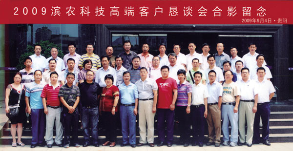 時間:2012-08-10 14:56秋高氣爽,天氣宜人,2009年9月4日至6日,濱農(nóng)科技董事長黃延昌率銷售公司代表一行人員,與來自全國各地的32位高端客戶相聚在山清水秀的貴陽市,就濱農(nóng)目前存在的問題及未來發(fā)展瓶頸進行了廣泛而有益的交流,會議取得了圓滿成功。