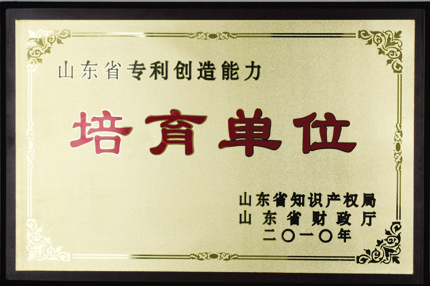 2010年4月22日,我公司被評(píng)審為“2010年度山東省專利創(chuàng)造能力培育單位”,該獎(jiǎng)項(xiàng)由省財(cái)政廳、省科技廳、省教育廳、省國(guó)資委、省科學(xué)院、省知識(shí)產(chǎn)權(quán)局、省專利技術(shù)保護(hù)鑒定中心等單位(部門)共同評(píng)審確定,每年度全省評(píng)出15家單位進(jìn)行重點(diǎn)培育。根據(jù)相關(guān)規(guī)定,我公司正式掛牌進(jìn)入三年培育期,培育期內(nèi)將獲得省知識(shí)產(chǎn)權(quán)局給予的10萬(wàn)元專項(xiàng)資金支持。